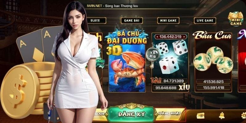 Khi bước vào trang chủ game iwin, anh em sẽ thấy cổng game được thiết kế khá sinh động, bắt mắt với đồ họa 3D nên cực kỳ mãn nhãn cho người chơi.